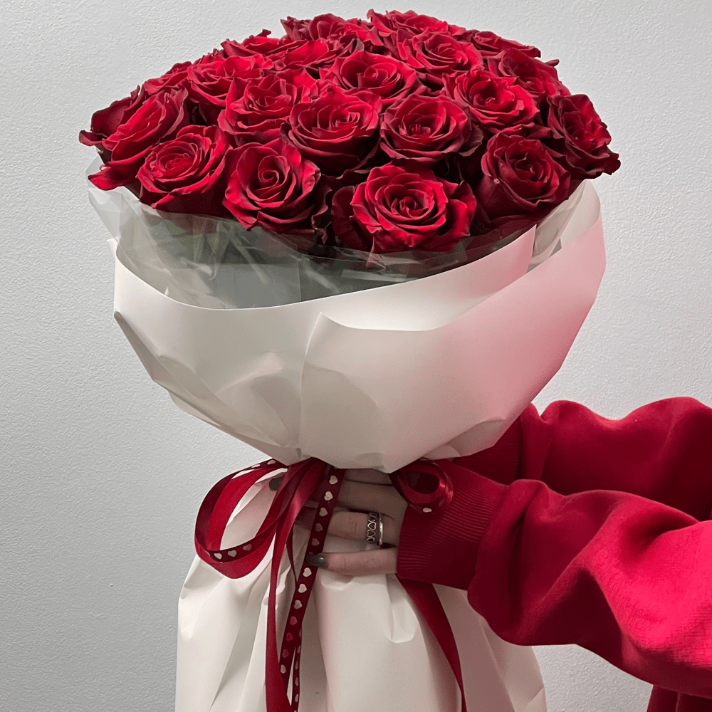 Ramo '25 rosas burdeos Ecuador por paquete'