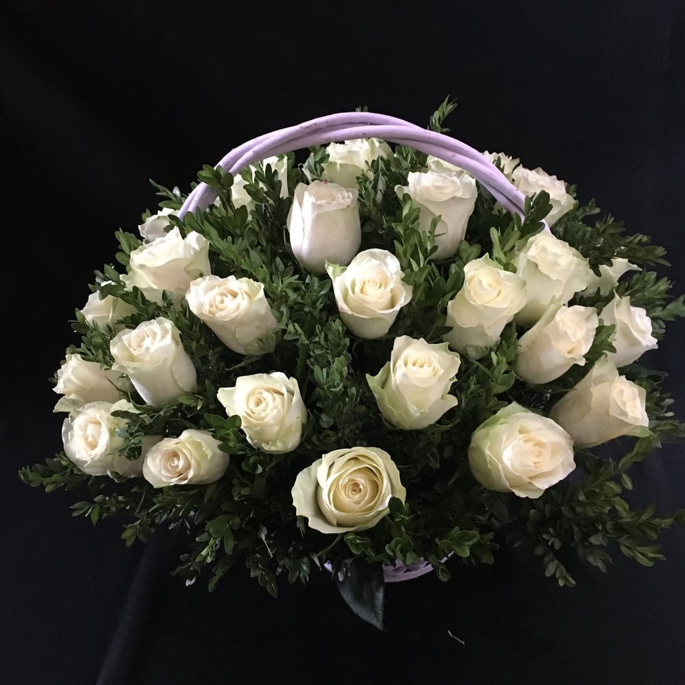 35 Rosas Blancas en una Cesta