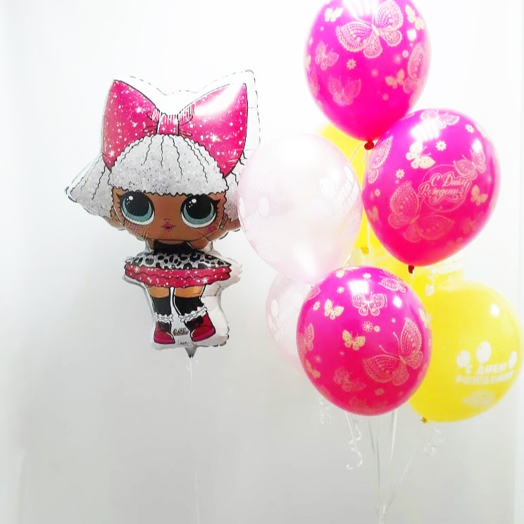 A set of balls with a lol doll