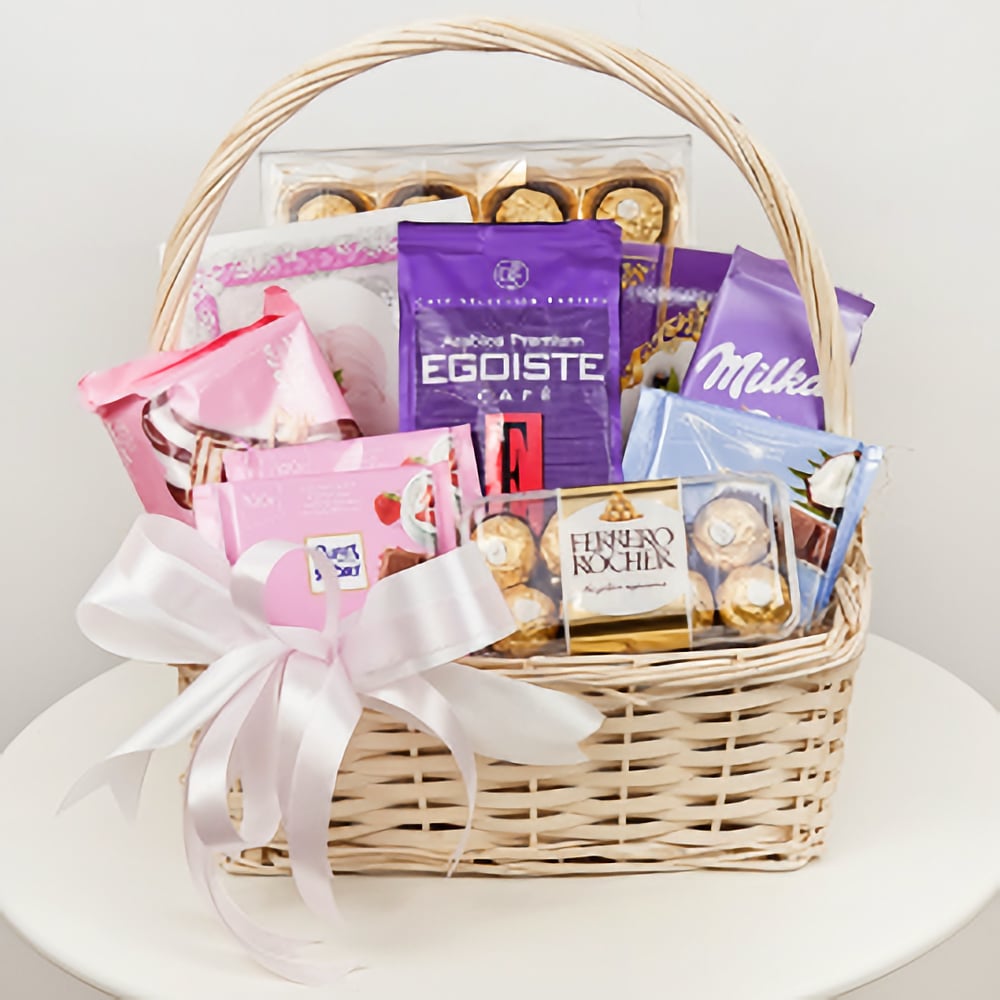 ¡Buenos días! ¿Cómo saludar a tu ser querido cuando no puedes estar ahí en persona? ¡Envíales una taza de café estimulante y un dulce! Una hermosa cesta de regalo llena de café, chocolates con leche surtidos, malvaviscos, gofres y finos dulces hará maravillas. Luego llámales para desearles un buen día. ¡Ahora tu persona especial está absolutamente feliz!