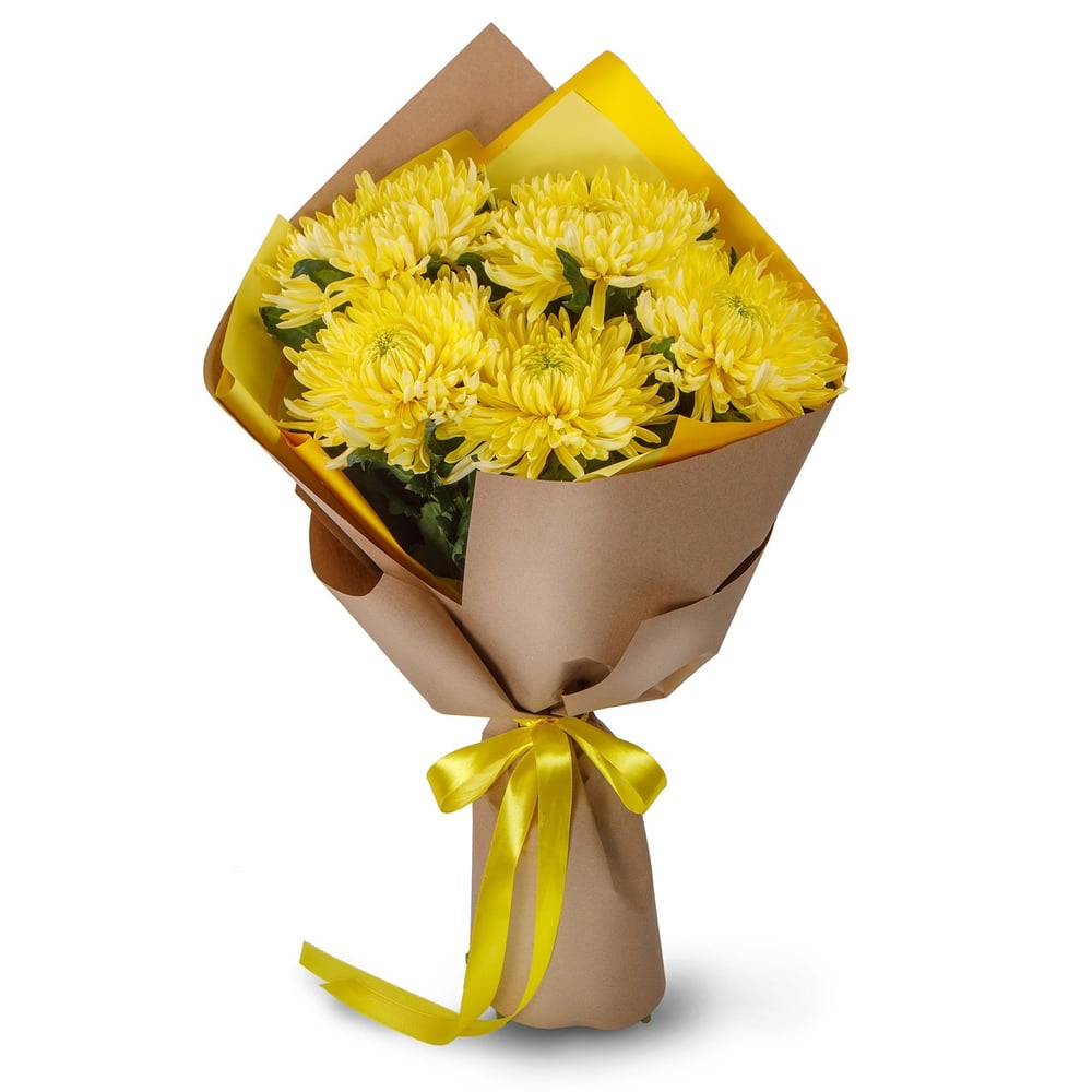Ramo 'Bouquet of 5 yellow chrysanthemums Single'