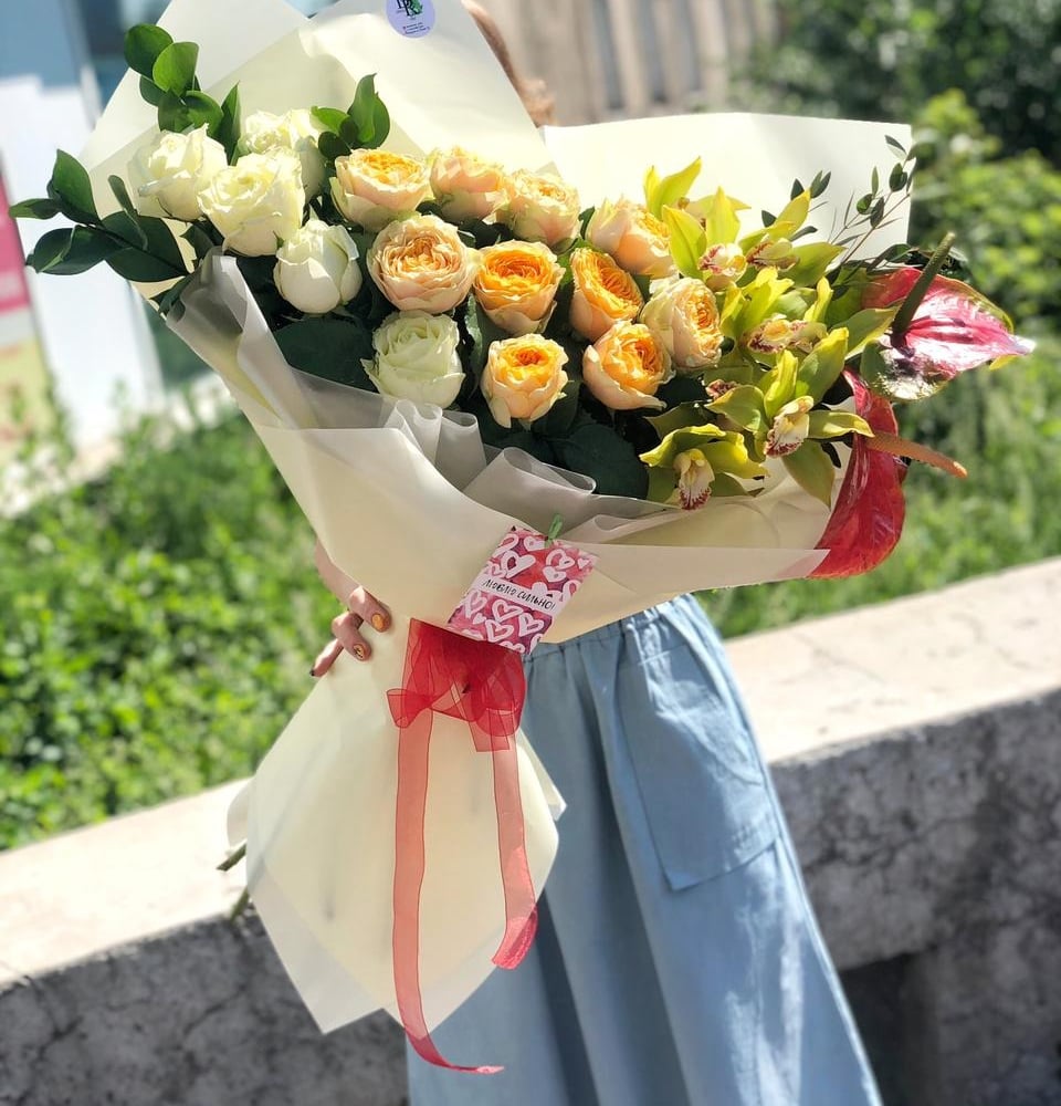 Ramo 'Bouquet of anthurium, roses and orchids'