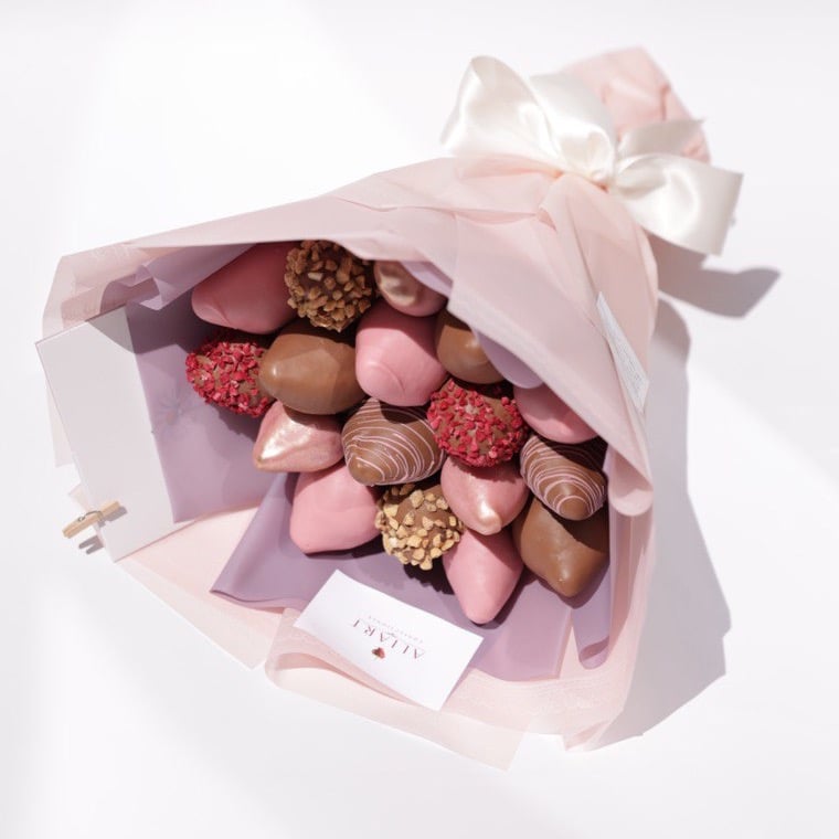 ¡Sorprende a alguien especial con nuestro impresionante ramo de fresas cubiertas de decadente chocolate belga, acompañado de una tarjeta de saludo personalizada! ¡Haz tu pedido ahora!