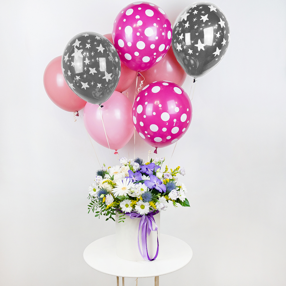 Esta nube floral de ternura seguramente se elevará en el aire en tan maravillosa compañía de brillantes globos de helio. ¡Envíalo a esa persona especial para ti, y un mar entero de entusiasmo está ...