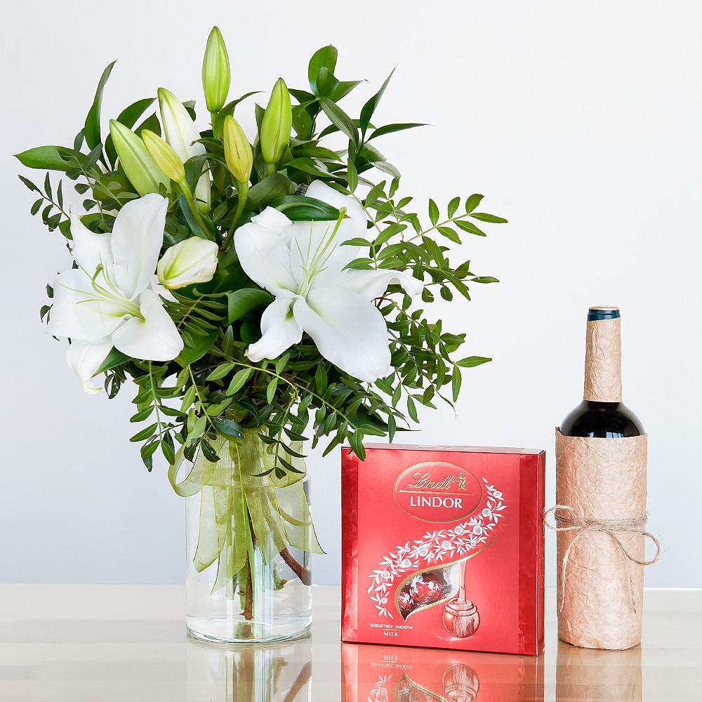 Lilies & Chocolates with wine