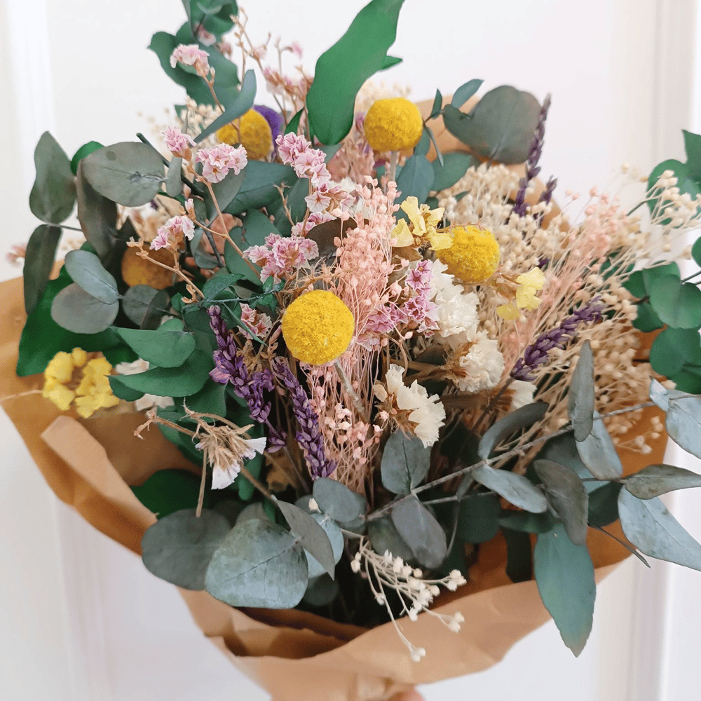 Ramo de flores preservadas campestre y colorido