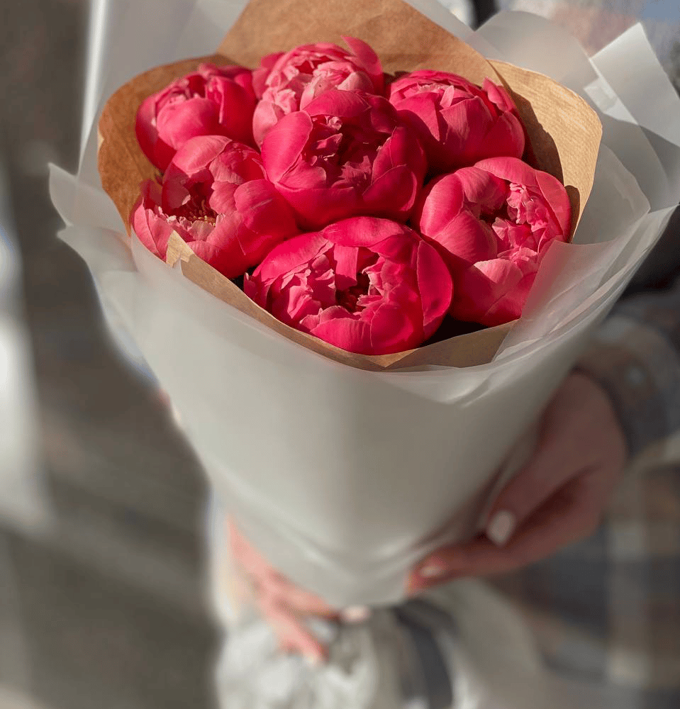 Ramo de peonias coral en papel artesanal 80