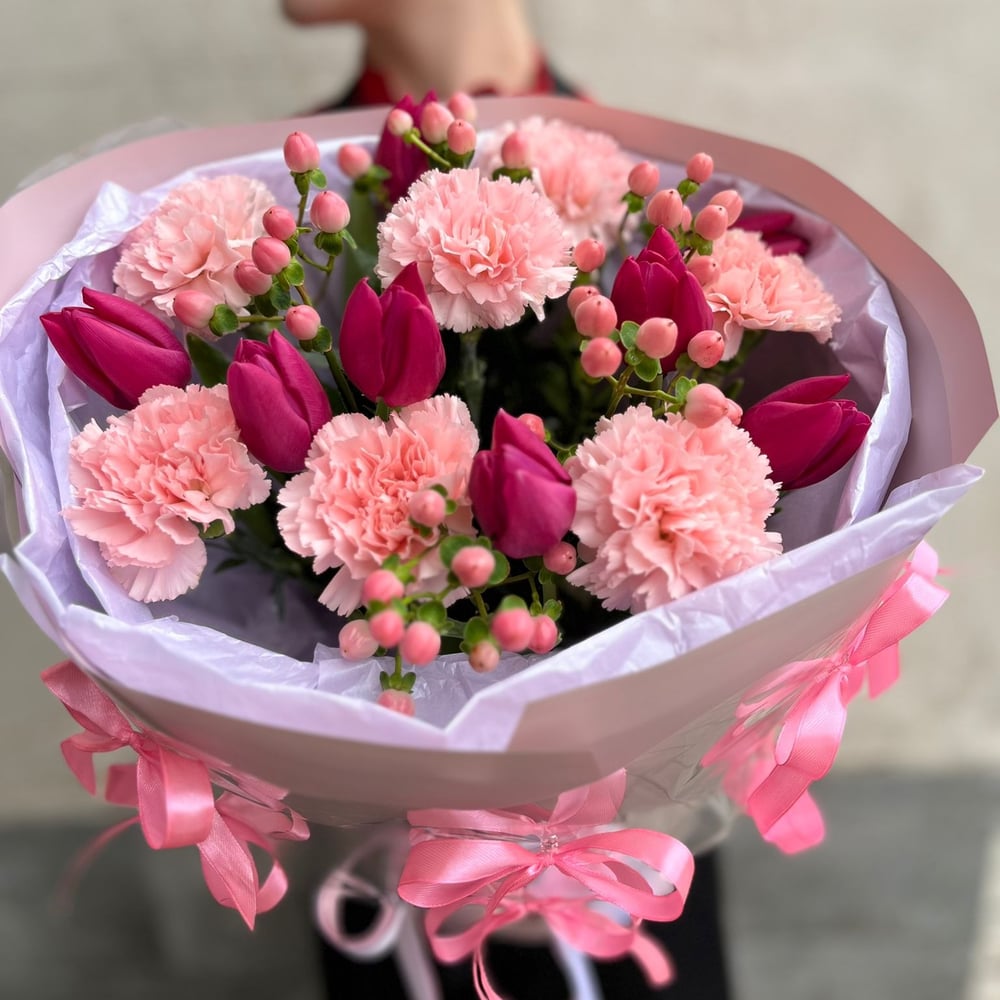 Ramo rosa con claveles y hipérico