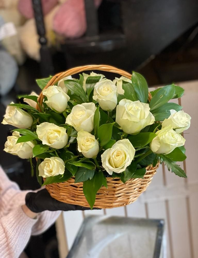 Cesta de flores 'Sueños blancos'